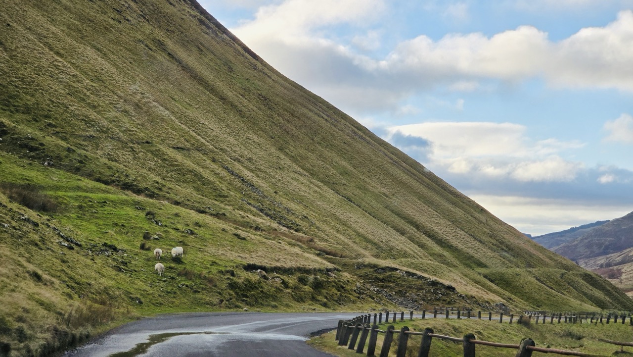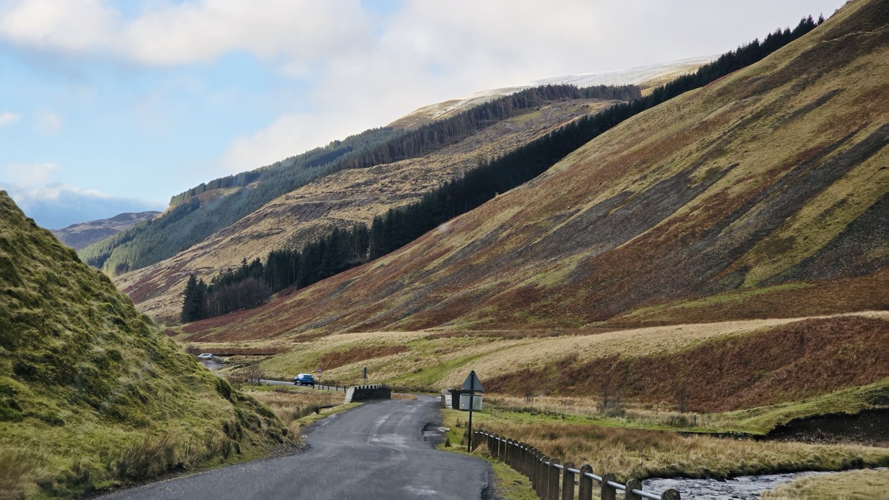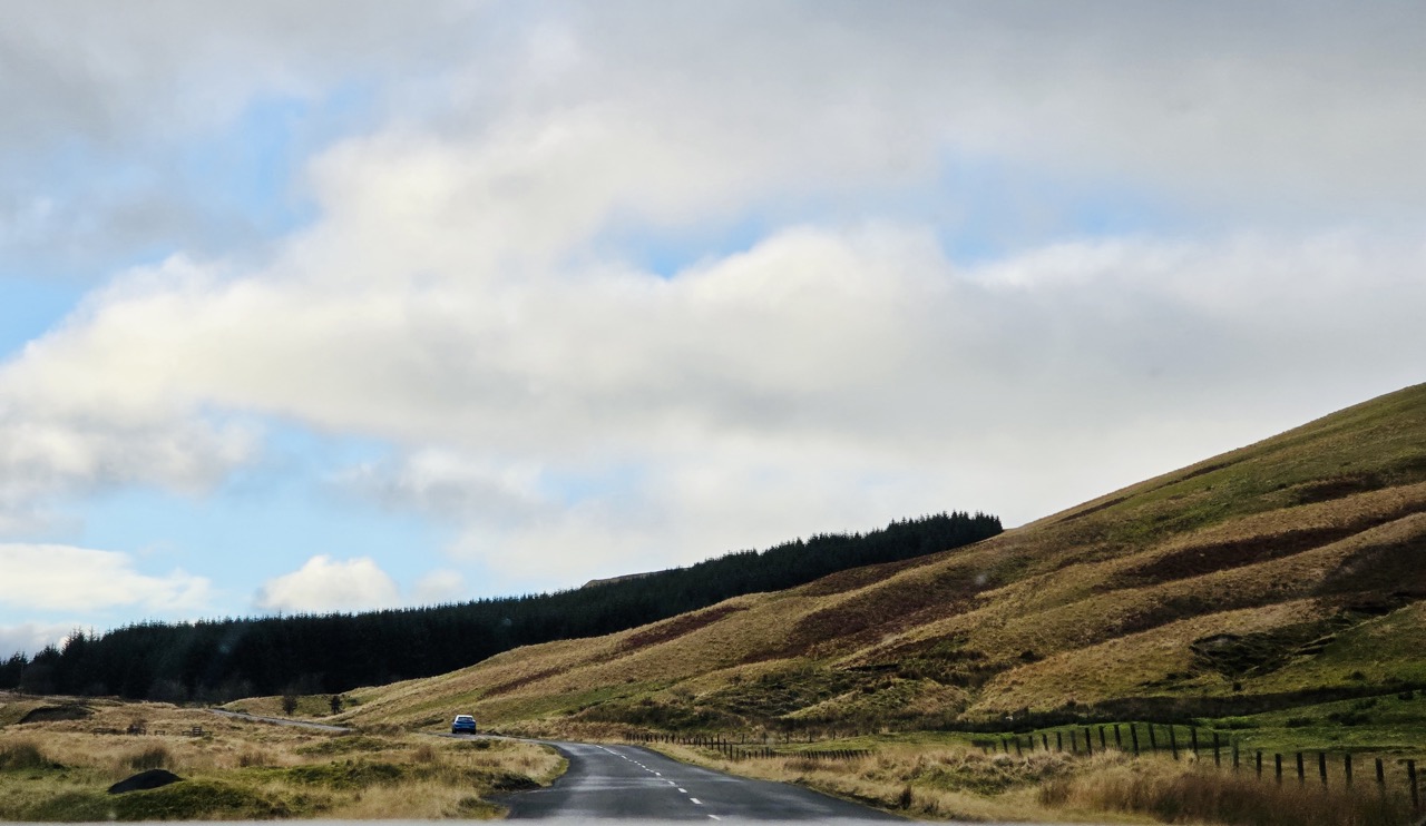 On Sunday, we drove to Grey Mare’s Tail Nature Reserve. The route was absolutely stunning, winding through dramatic mountains and the raw, untouched landscapes of the Scottish Borders.